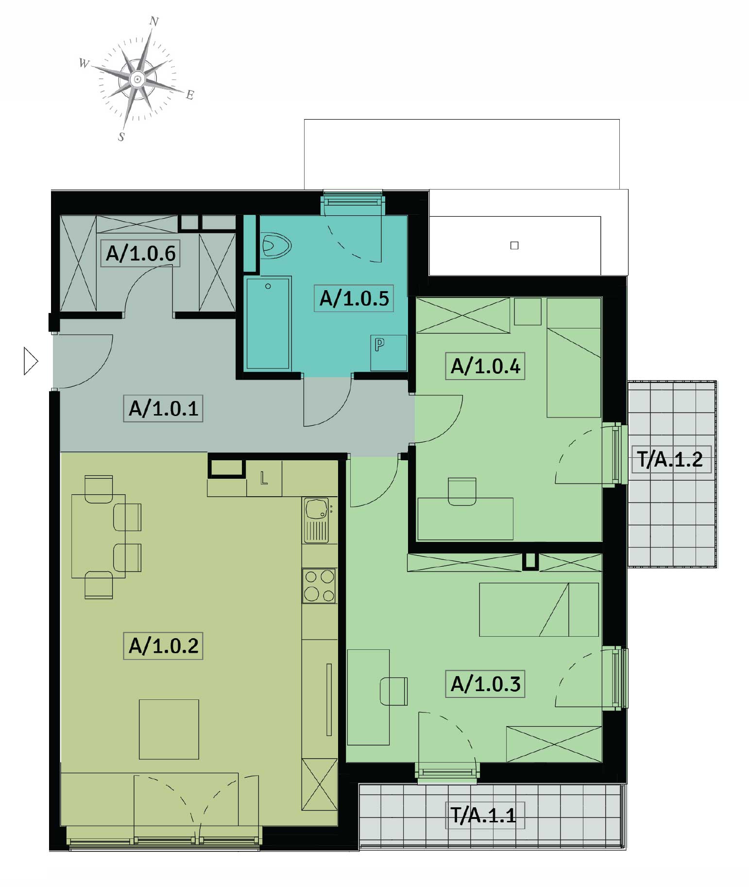 Mieszkanie MA1 I piętro – 3 pokoje – 3 balkony – powierzchnia mieszkania 79.24 m2 Pobierz kartę mieszkania Wróć do strony 1 piętra Wróć do strony osiedla